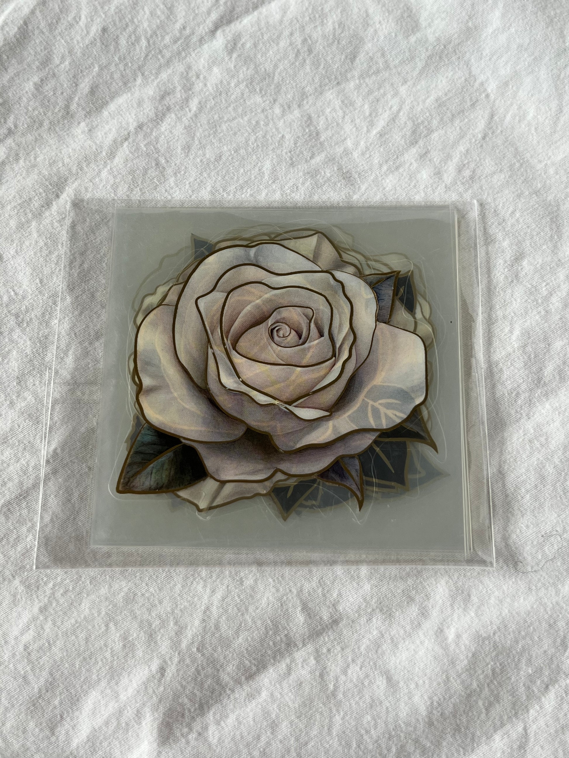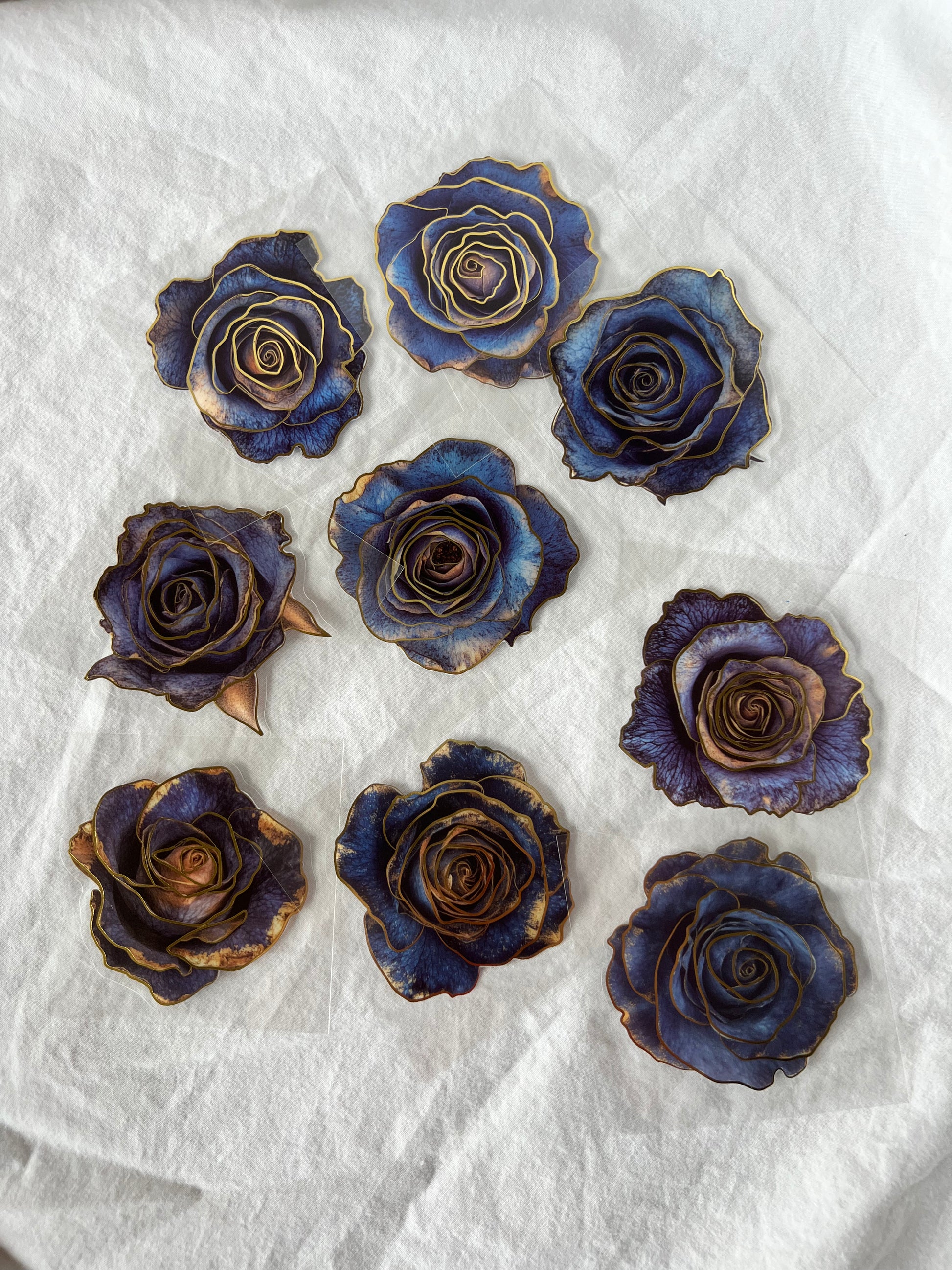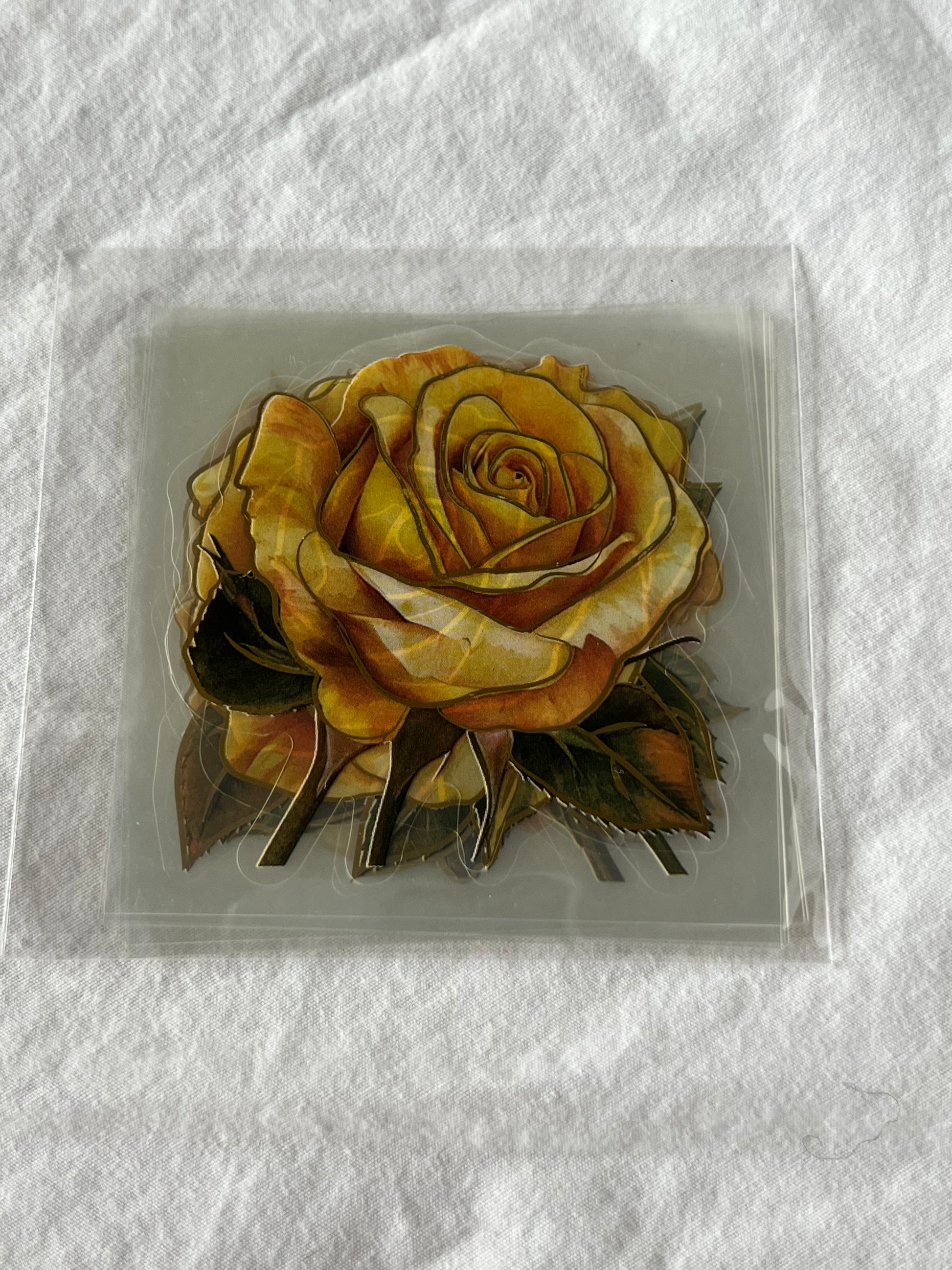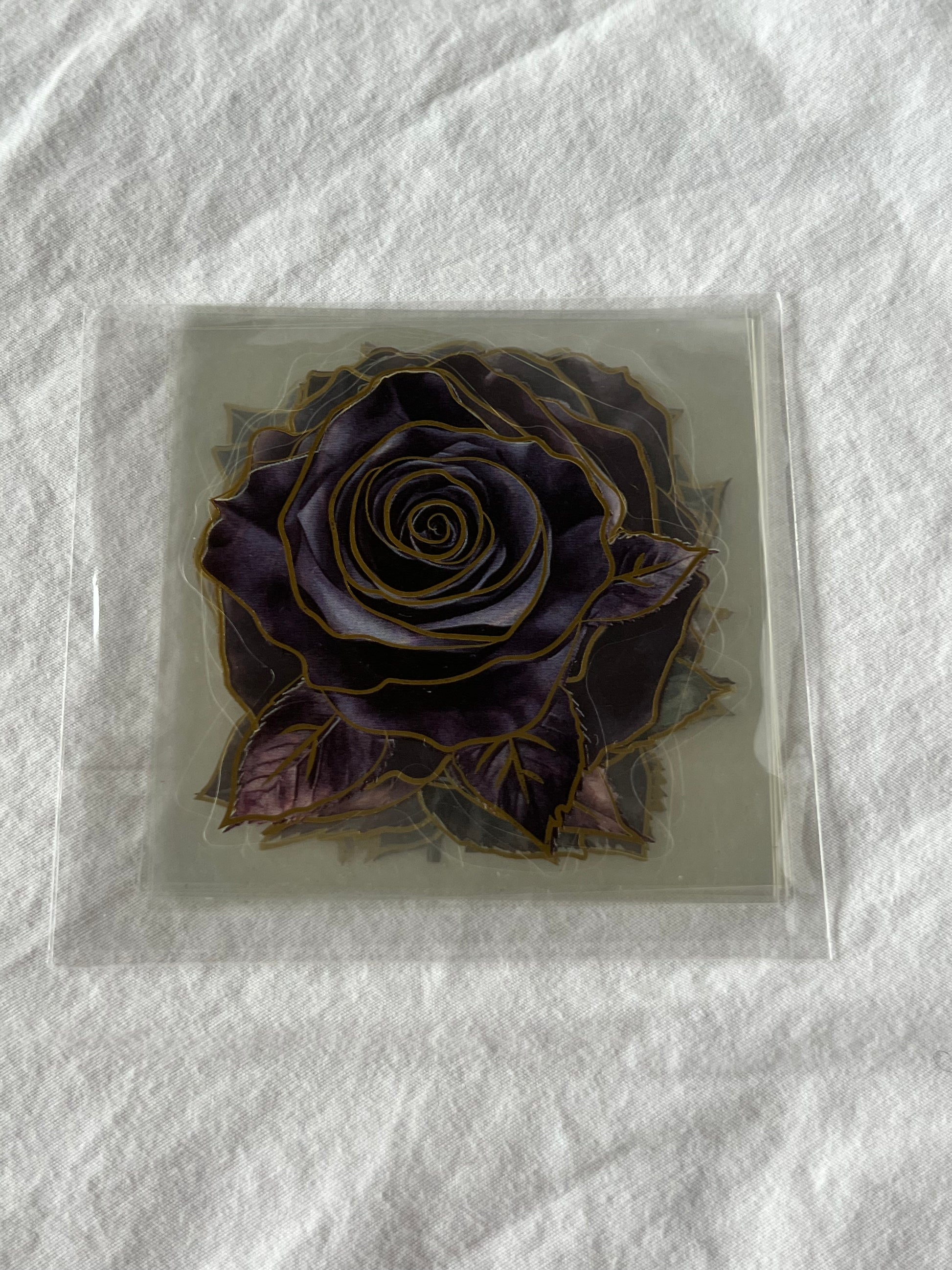 Pack of 10 transparent rose stickers in vibrant color with foil detailing
